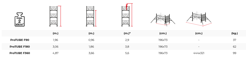 Pomimo wysokości konstrukcji (4,86 m), całość pozostaje stabilna nawet na nierównym podłożu. Waga rusztowania wynosi jedynie 99 kg, co przy tej wysokości czyni model F360 jednym z najlżejszych rusztowań aluminiowych w swojej klasie.